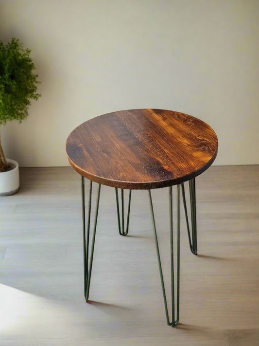 Rustic Industrial Bar Table, Round Table, Side Table, Made with Solid Wood - Available in many Colours!