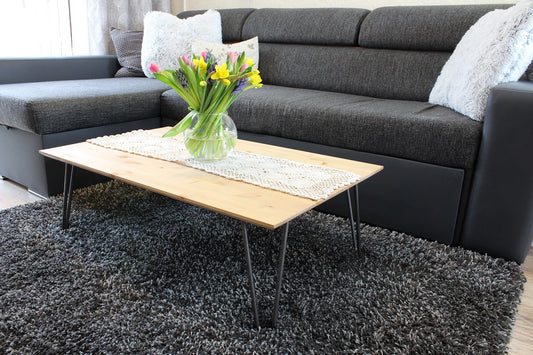 Solid Wood Low Table with Storage & Hairpin Legs | Handmade Coffee Side Table