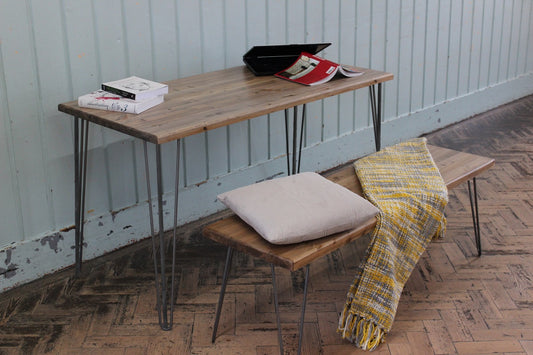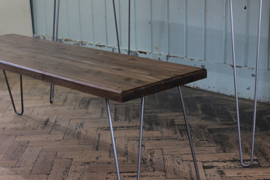 Industrial Solid Wood Dining Table / Desk | Hairpin Leg Work Table
