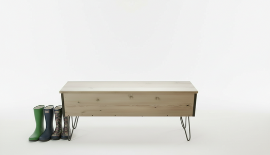 Industrial Wooden Storage Bench with Hairpin Legs | Solid Wood Seating