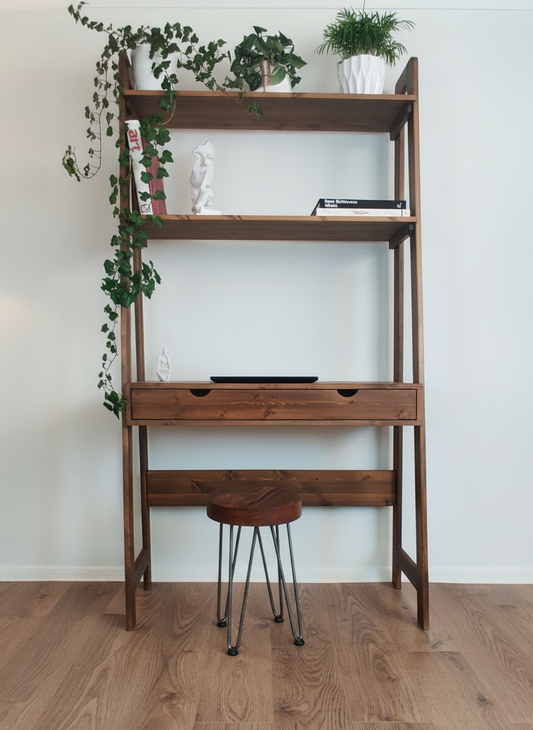 Ladder‑Style Modular Wooden Desk | Solid Wood Shelves & Drawer
