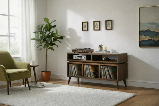 Solid Wood Turntable Stand with Vinyl Storage & Hi-Fi Shelf – Custom Colours, UK-Made