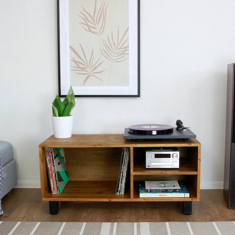 Wooden Industrial Record Player Stand, Record Storage Cabinet, TV stand, Records Stand - Open Storage